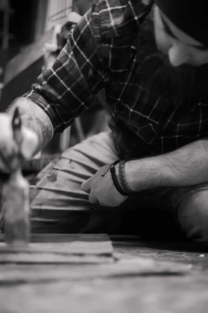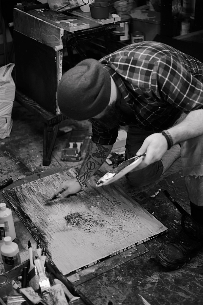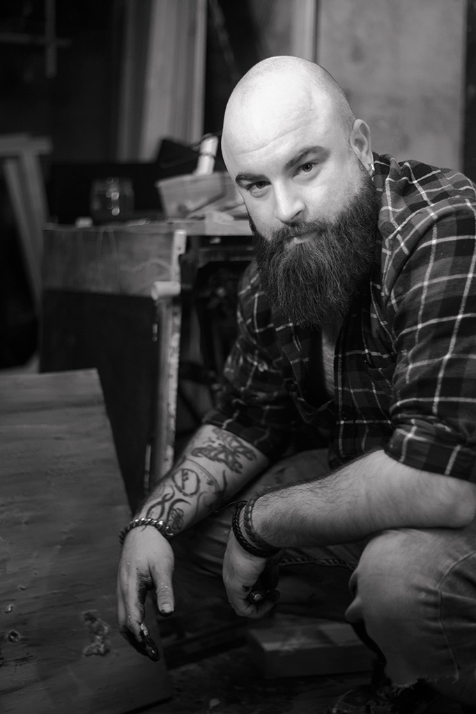 Portraits de l'artiste Nemo Leigham / La Barbe Abstraite dans son atelier.